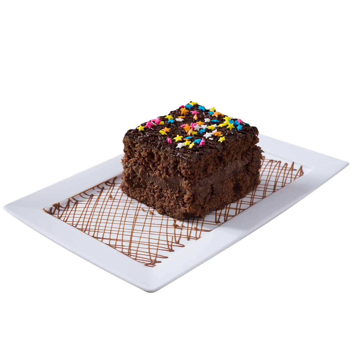Hora da diversão! A massa de chocolate com recheio e cobertura de bricadeiro com o toque dos confeitos de estrelinha coloridas evocam a diversão a qualquer hora.